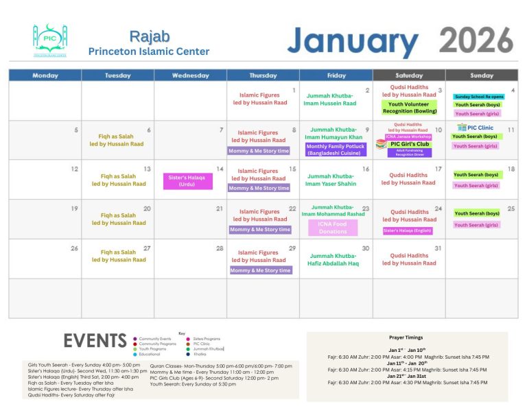 Join us for community events at Princeton Islmic Center! From Qiyam gatherings to Sisters Halaqa, Youth Seerah, and Jummah Khutbas, there’s something for everyone. Stay connected for upcoming programs